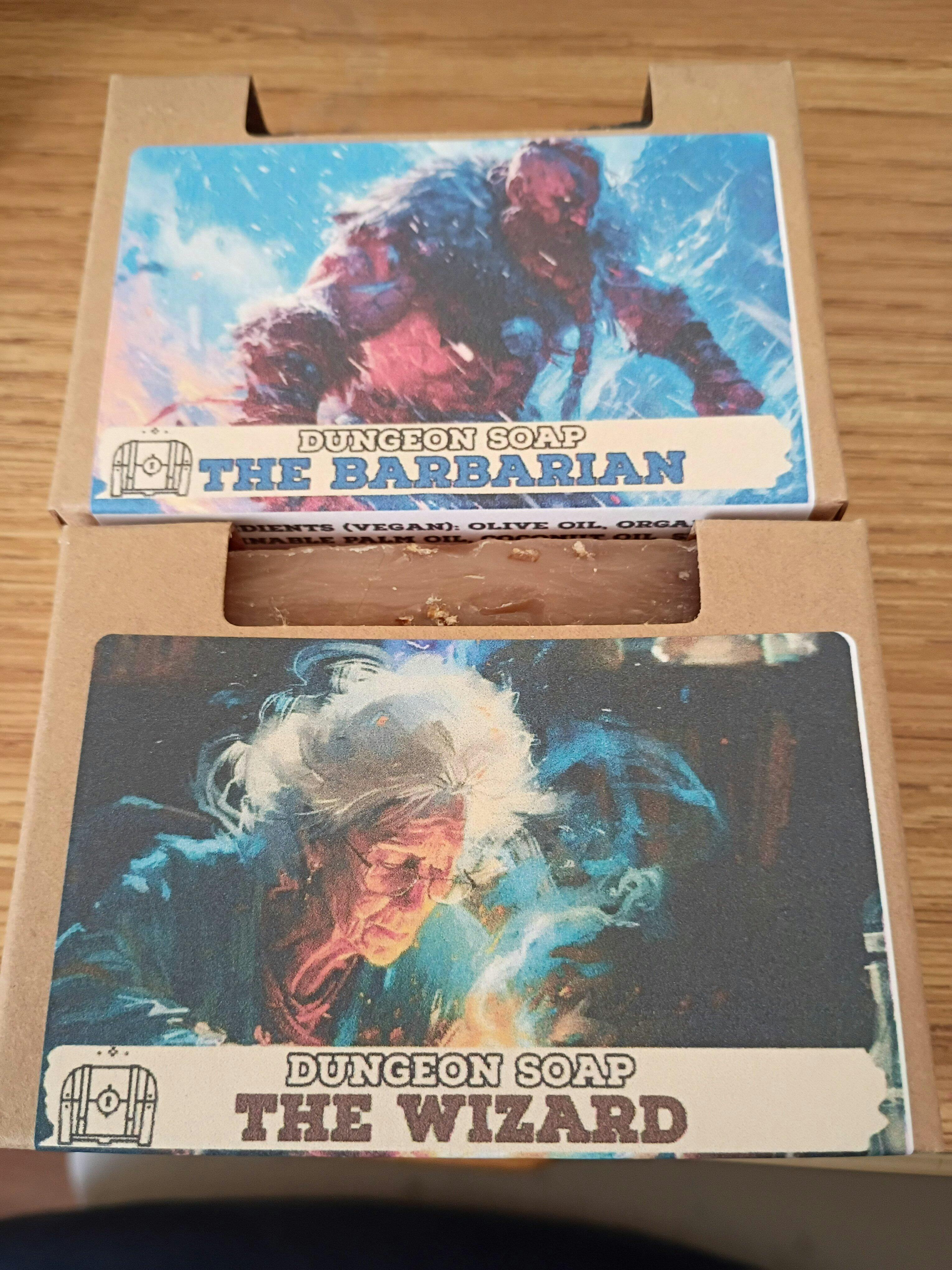 Been using Dungeon Soap for more than a year. My two favs are The Barbarian with pumice very gritty and has menthol, The Wizard has oatmeal less gritty with goat milk and honey. Not into gritty? Try the sampler sample sizes of all of Dungeon Soaps in a re-useable tin. Thank you Dungeon Soap!
